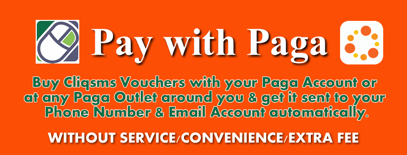 Note: You may receive your Voucher PIN in Email Only if the Phone Number on your Cliqsms account is not updated. You do not need to pay any Service Charge/Fee to the Paga Agent.